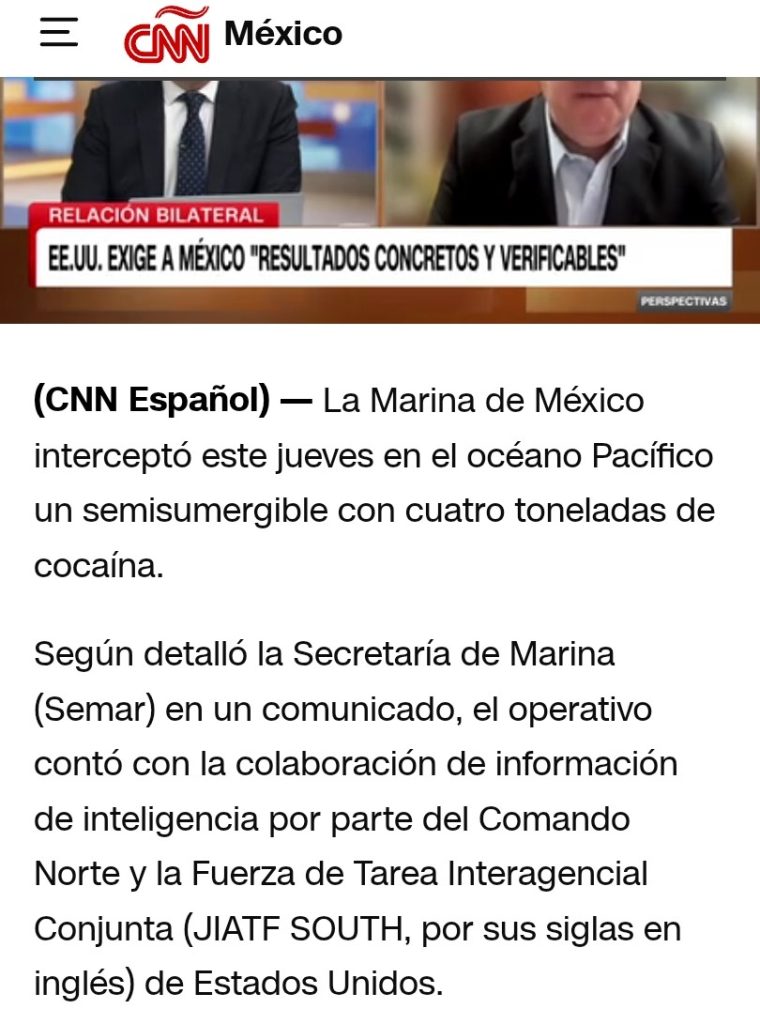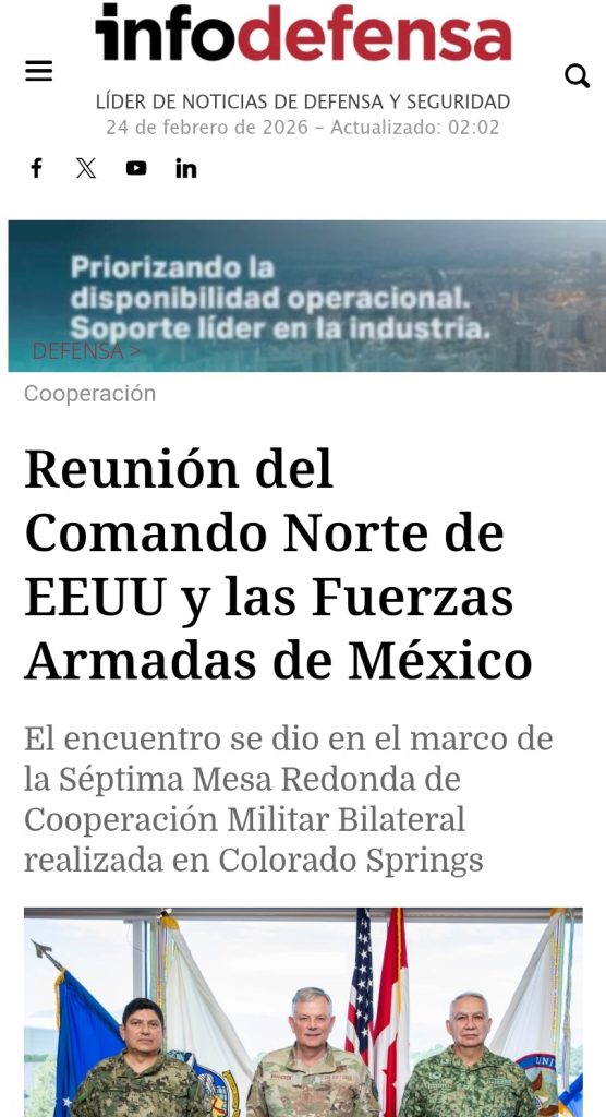 Aunque Claudia Sheinbaum, diga que no, en los hechos es otra cosa, como lo hemos demostrado, aunado a que en la conferencia mañanera del 23/02 el General Ricardo Trevilla Trejo, Secretario de la Defensa Nacional, dijo claramene con la voz muy bajita que, desde Enero se vienen coordinando con el Comando Norte de EU.