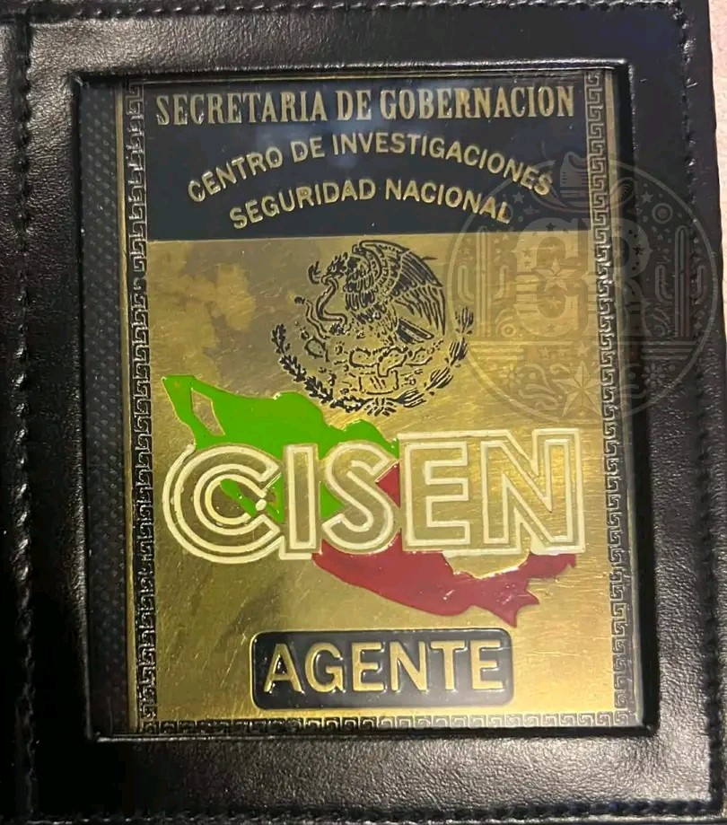 En esta imagen se muestra la placa o «charola» que usaban algunos agentes del Centro de Investigación y Seguridad Nacional (CISEN), órgano de inteligencia del gobierno mexicano que funcionó durante 30 años, de 1989 hasta el 2018.