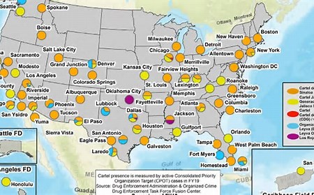 La DEA, en su informa anual, a cinco meses de estar operando en México junto con el Pentágono, para lo cual obligaron a Amlo a que permitiera la entrada de soldados norteamericanos armados, señala que el Cártel de Sinaloa y CJNG tienen presencia en 50 Estados de la Unión Americana, o sea de Estados Unidos y en decenas de naciones.